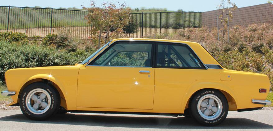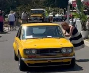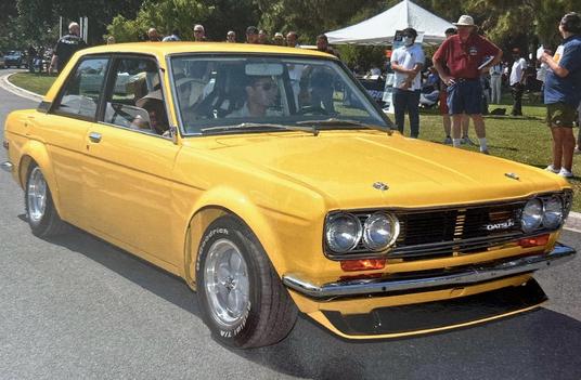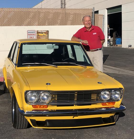 Peter Brock poses for a photograph with his Personal Street Datsun 510.