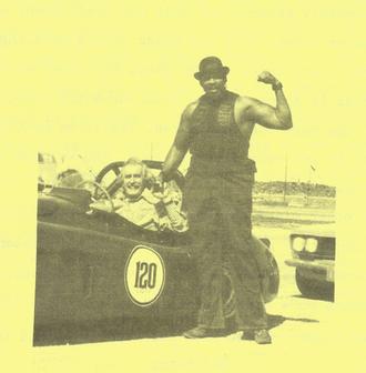 Legendary Big Willie poses with Fred Lake and his vintage race Jaguar XK120. Next in line - Bob Schulhof and the Brock Buster.